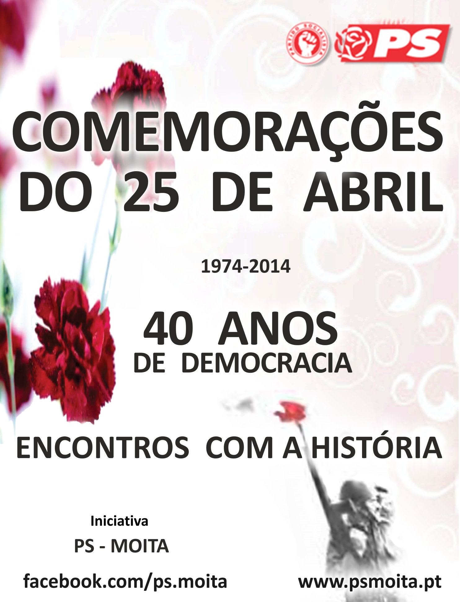 No ano em que se comemoram os 40 anos da Revolução de Abril, o Partido Socialista da Moita vai levar a efeito encontros públicos com alguns dos protagonistas locais que viveram e tiveram responsabilidades partidárias ou autárquicas naquele conturbado período de edificação da nossa Democracia e da conquista da Liberdade.