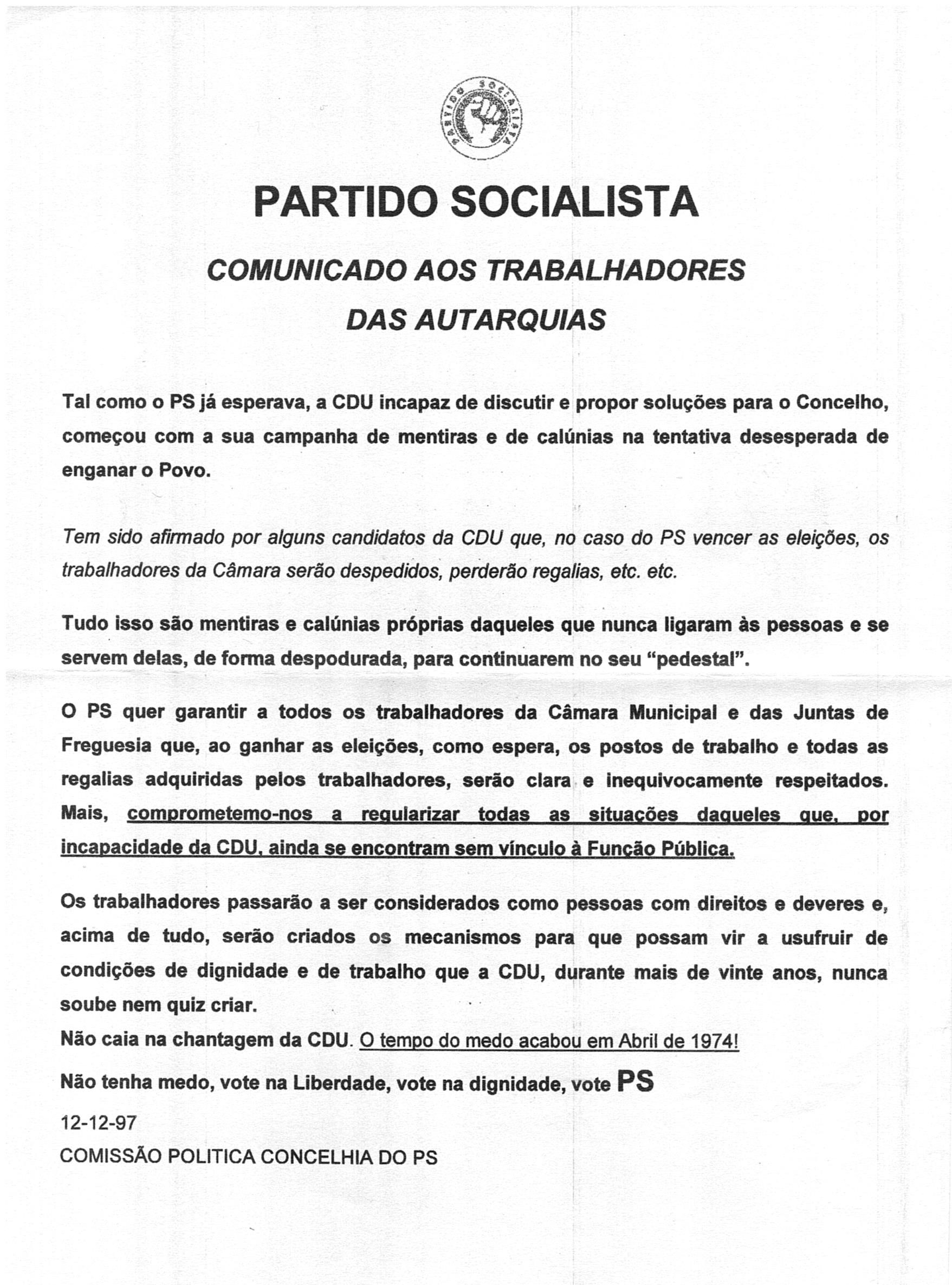 O PS quer garantir a todos os trabalhadores da Câmara Municipal e das Juntas de...