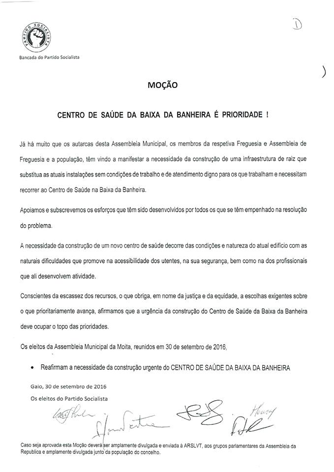 Bancada do Partido Socialista – Centro de saúde da Baixa da Banheira é prioridade! Outubro 2, 2016 admin Off Autarcas Socialistas, Moção apresentada pelo Partido Socialista na Assembleia Municipal, descentralizada na Sede do Beira-Mar Gaiense que...